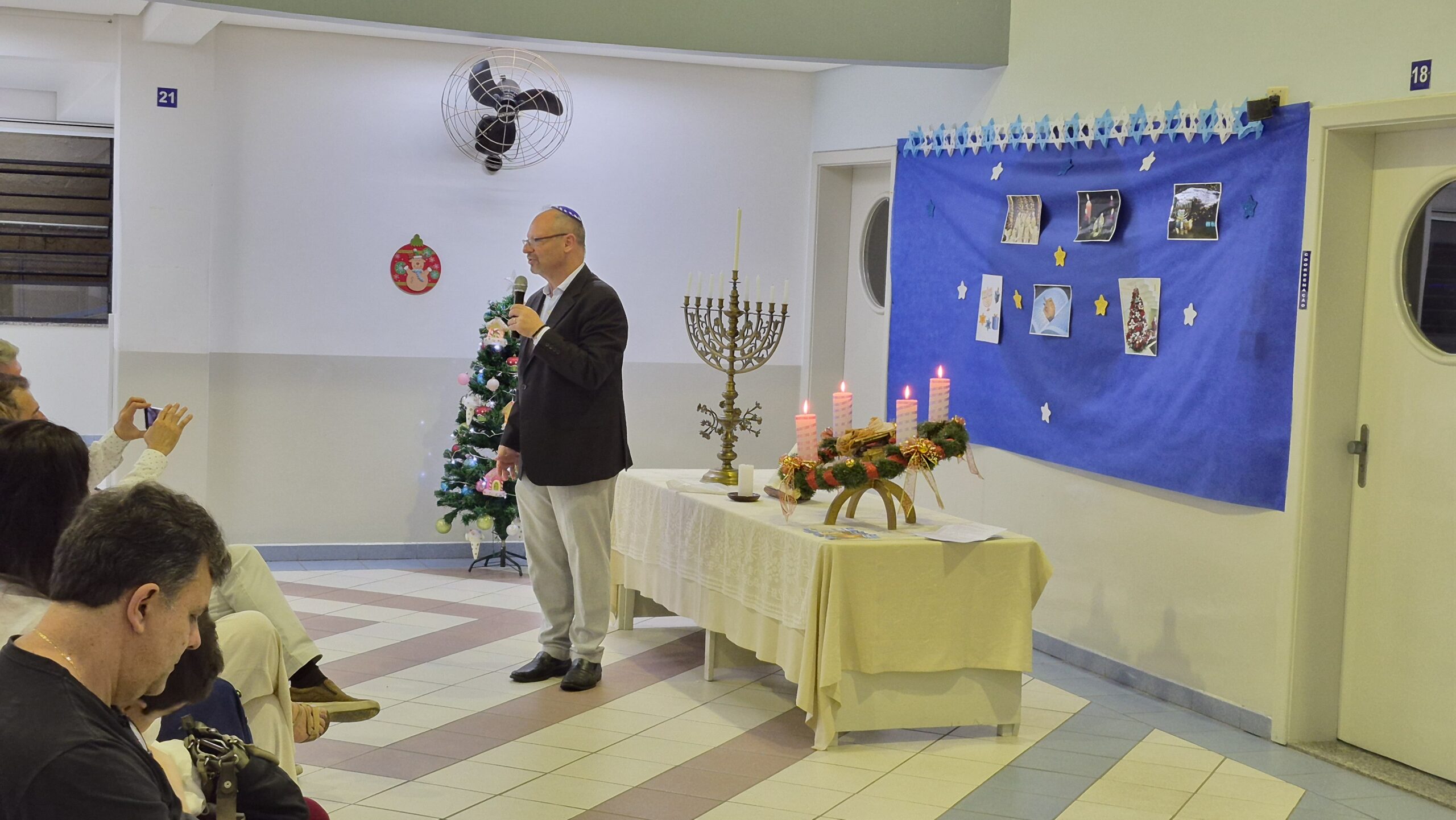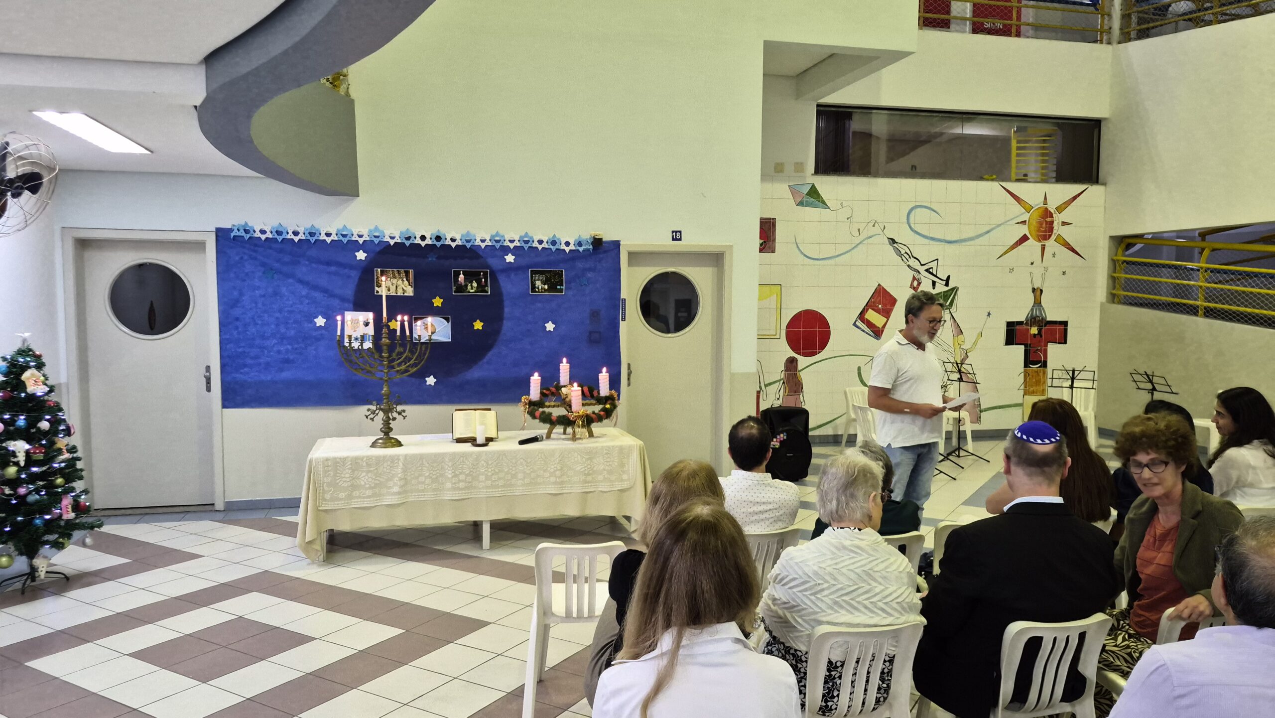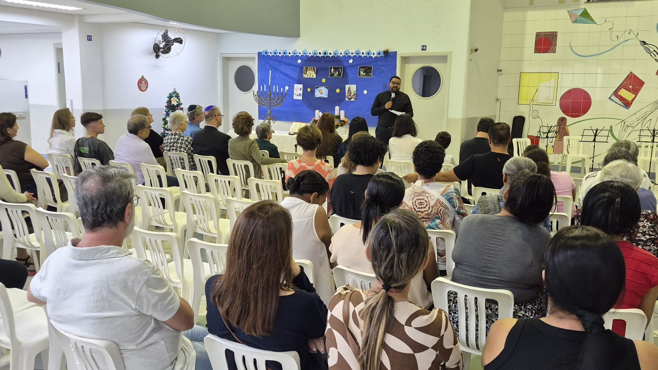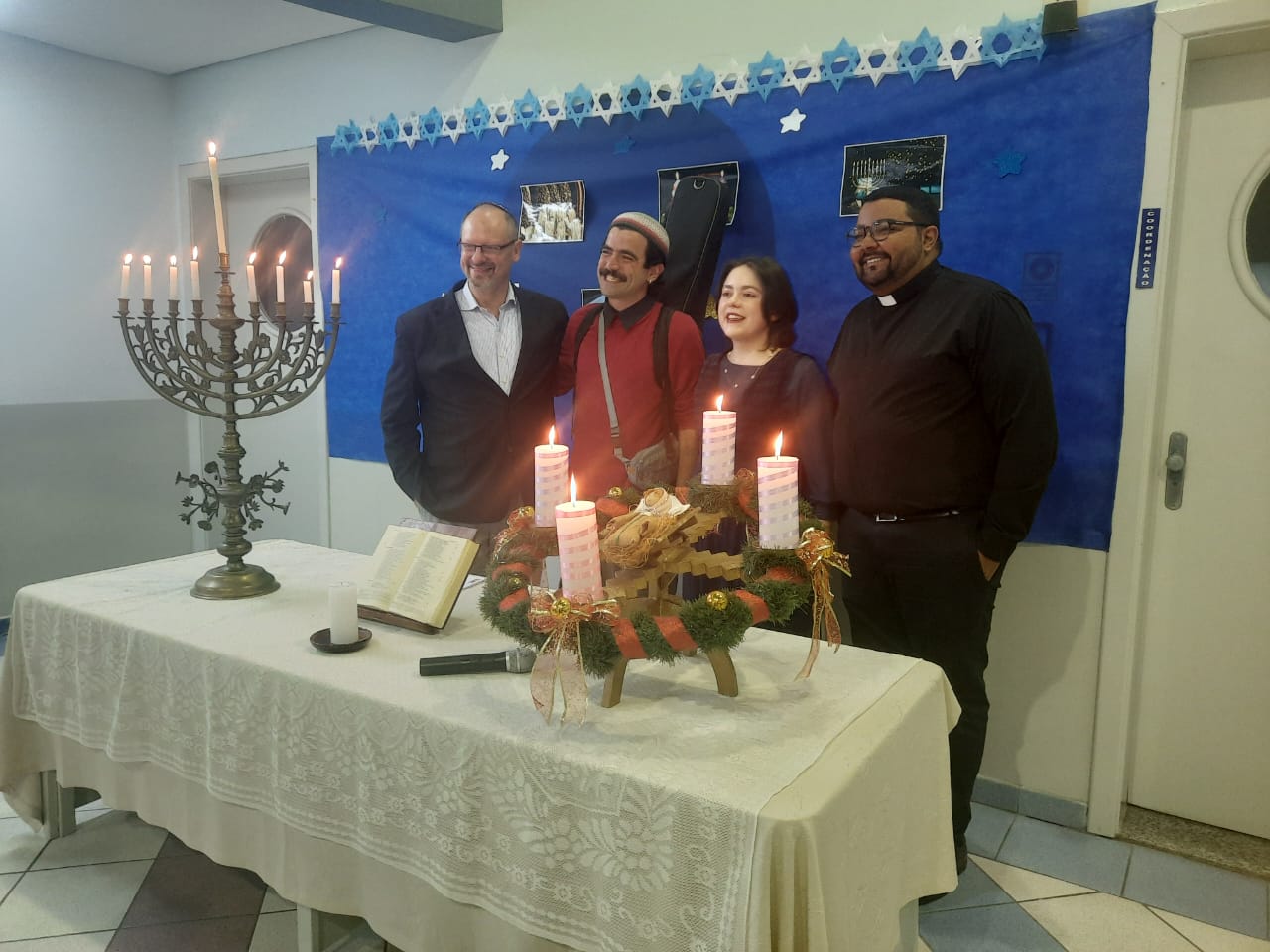 Tivemos momentos de espiritualidade, reflexão e partilha, com a presença do Rabino Uri Lam, o Padre Gleyson Quirino de Oliveira e atrações musicais com o Quinteto Sion da Corporação Musical Irmã Dina de Sion apresentando musicas natalinas e Margot Lohn e Arthur Salim apresentando cantos hebraicos!