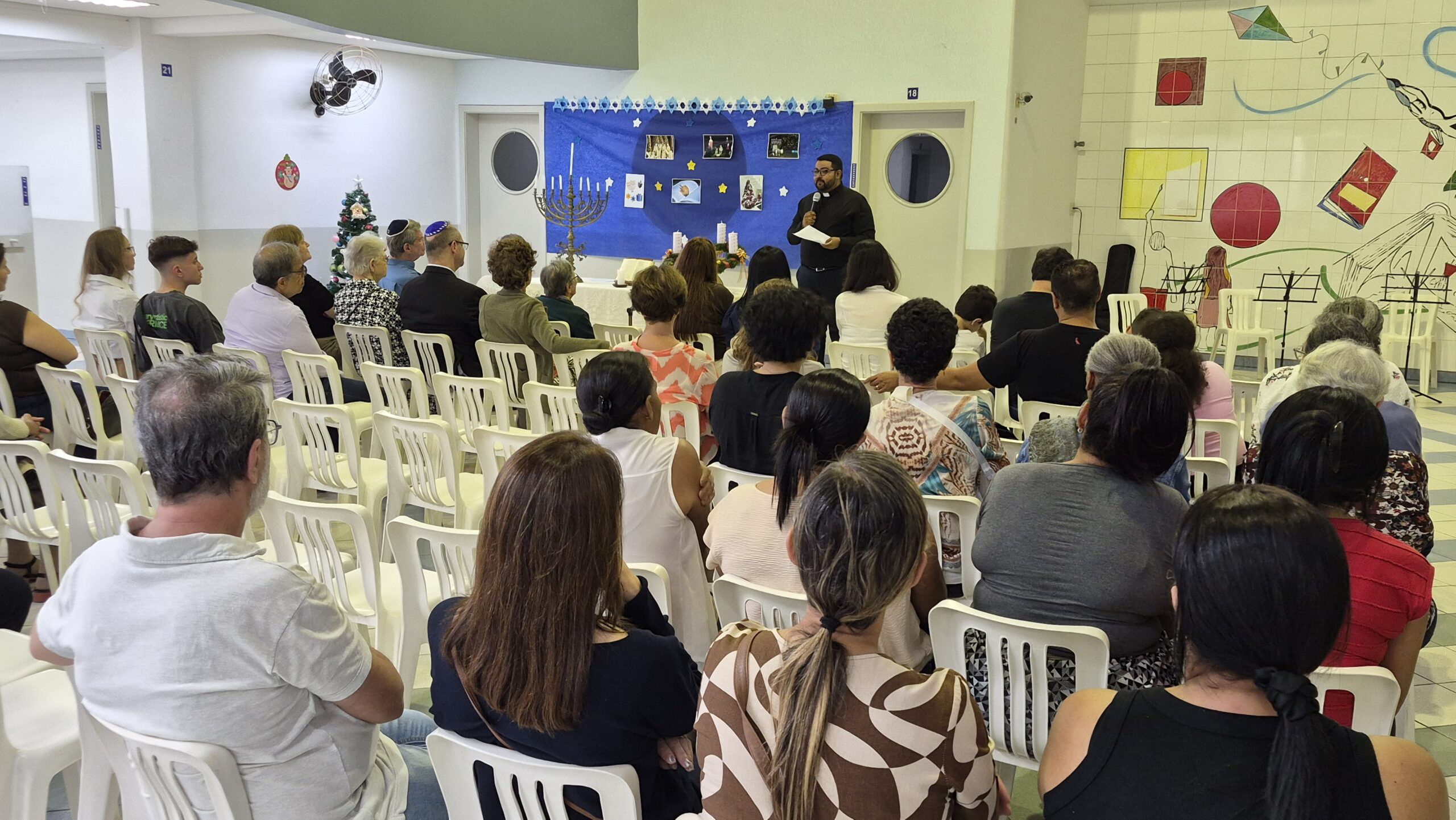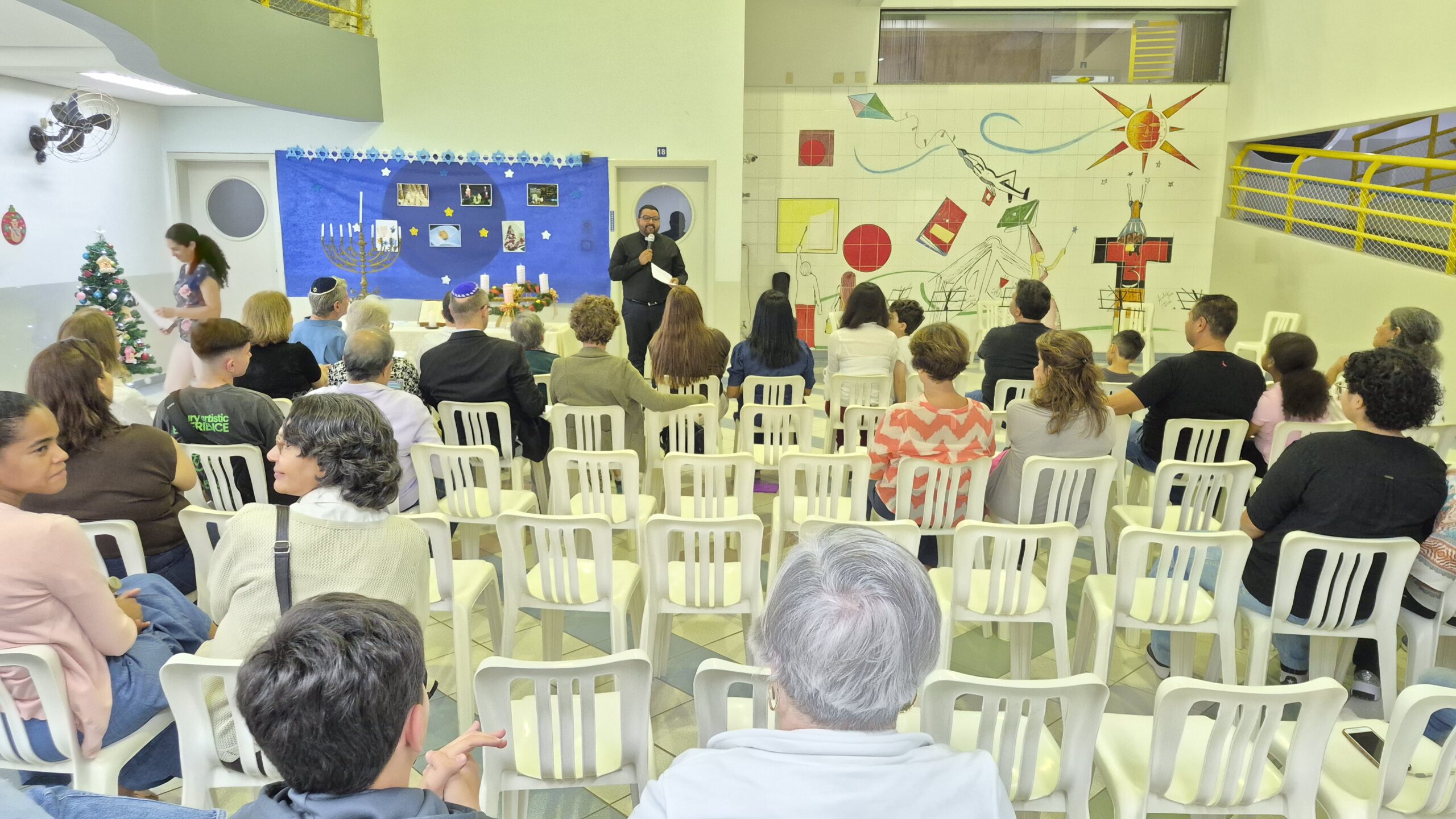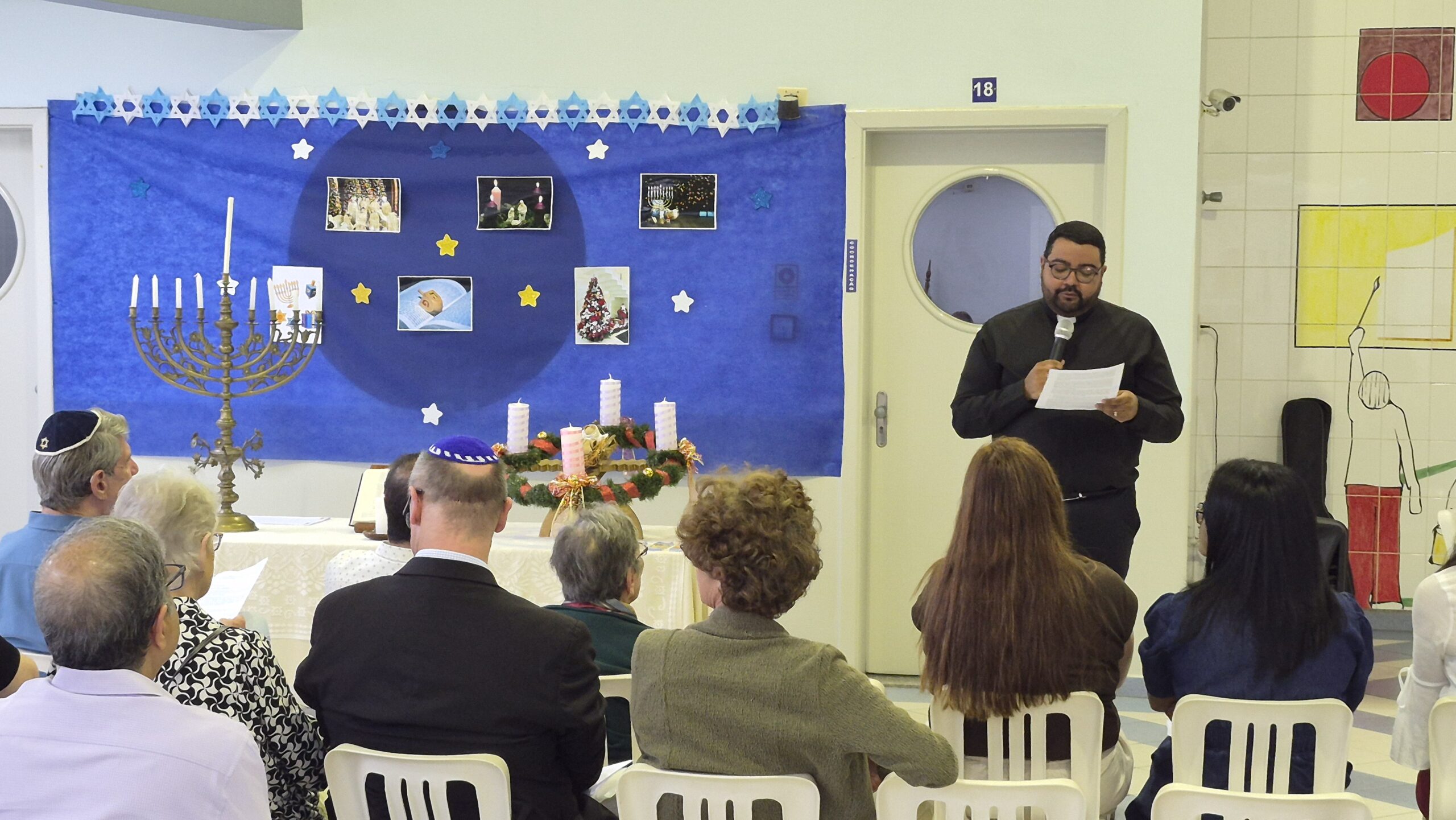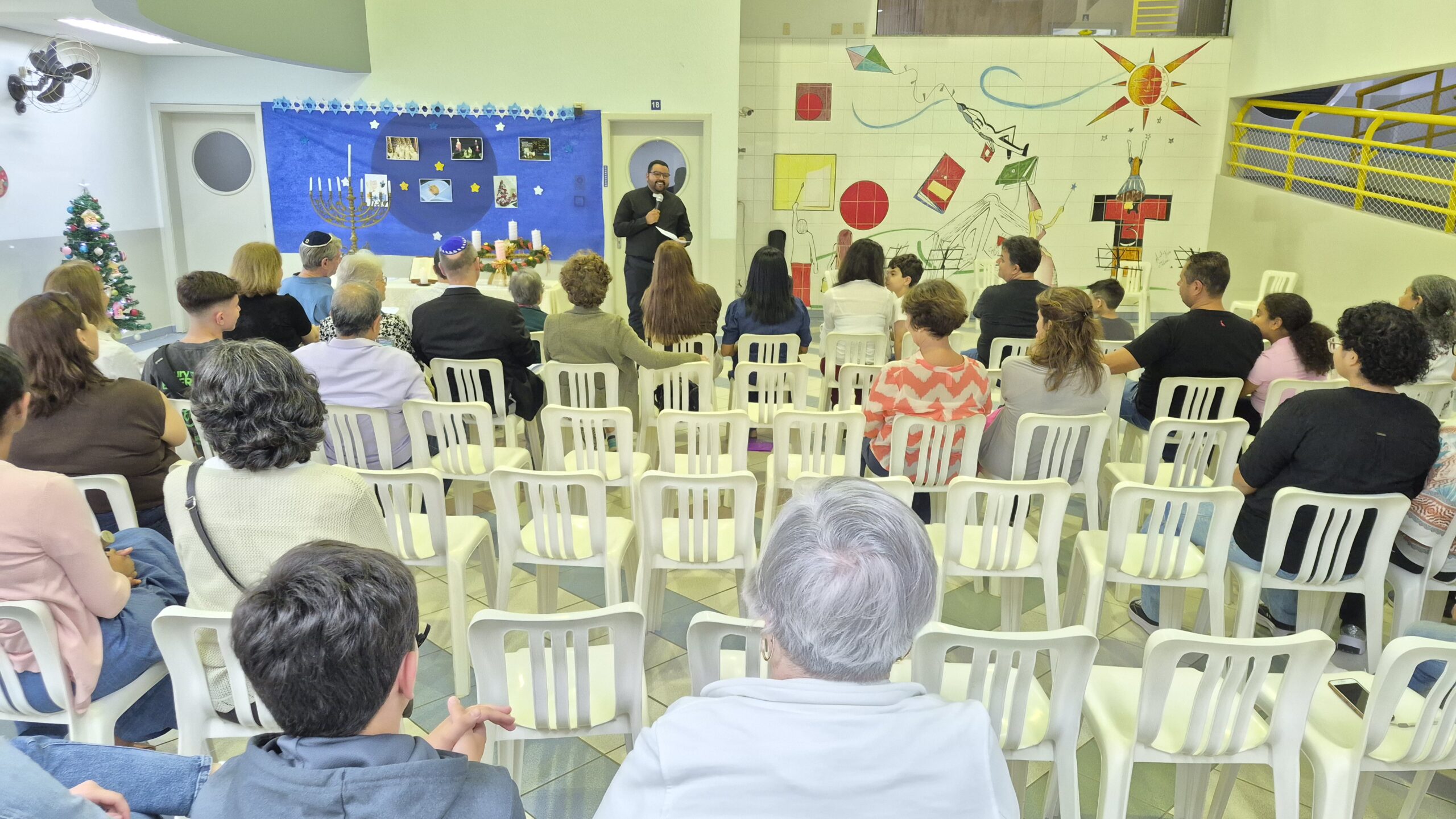 Tivemos momentos de espiritualidade, reflexão e partilha, com a presença do Rabino Uri Lam, o Padre Gleyson Quirino de Oliveira e atrações musicais com o Quinteto Sion da Corporação Musical Irmã Dina de Sion apresentando musicas natalinas e Margot Lohn e Arthur Salim apresentando cantos hebraicos!