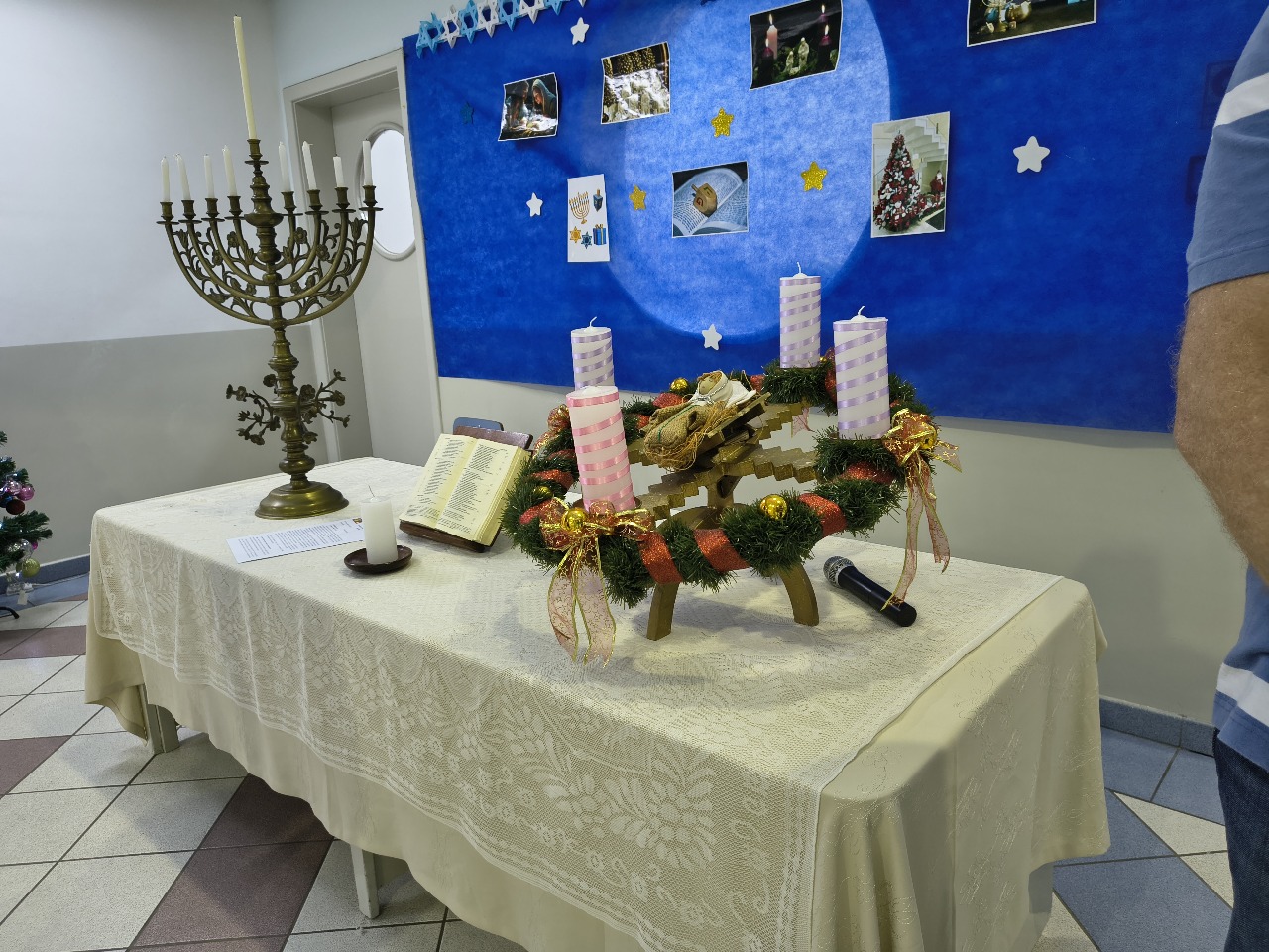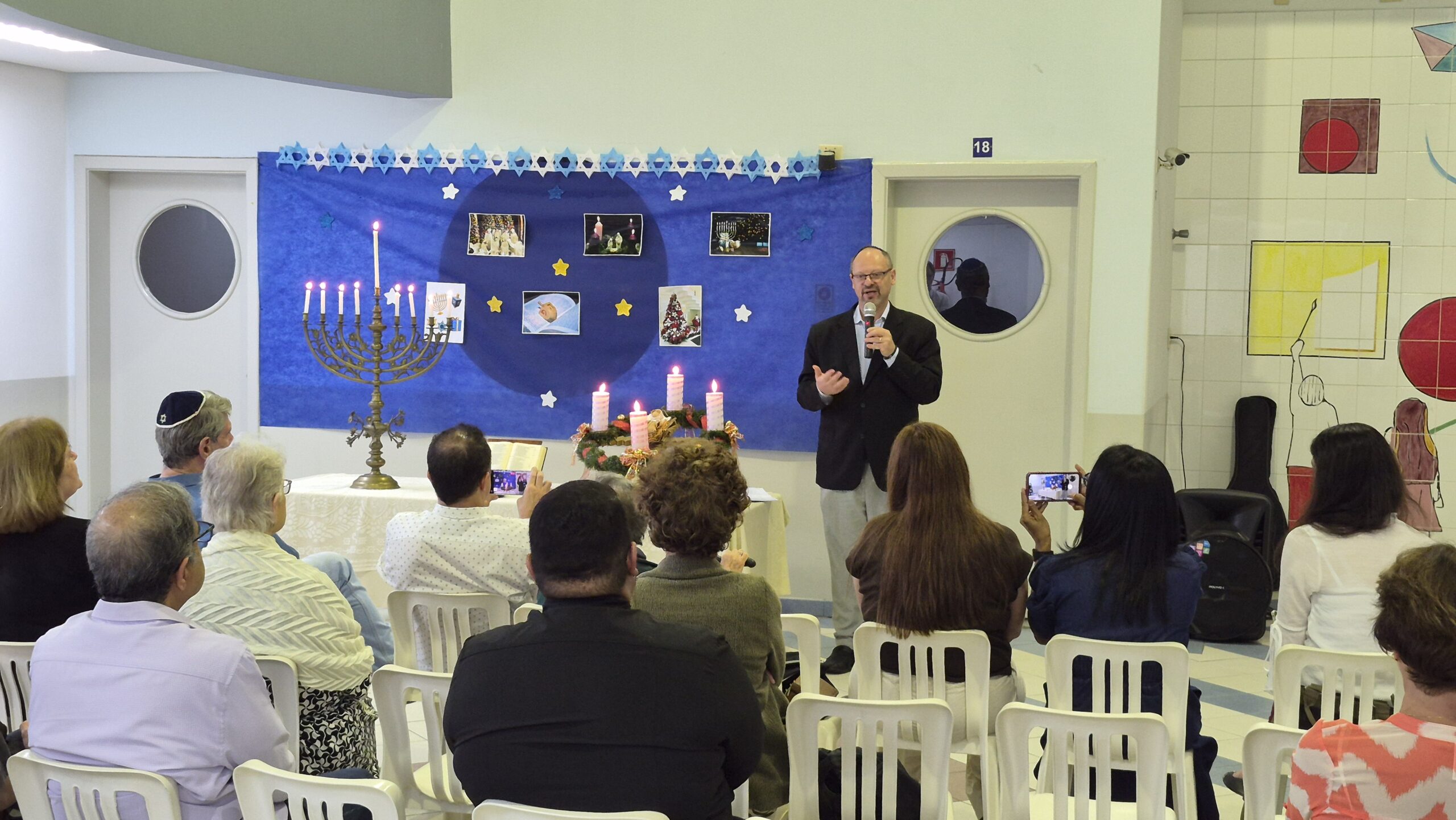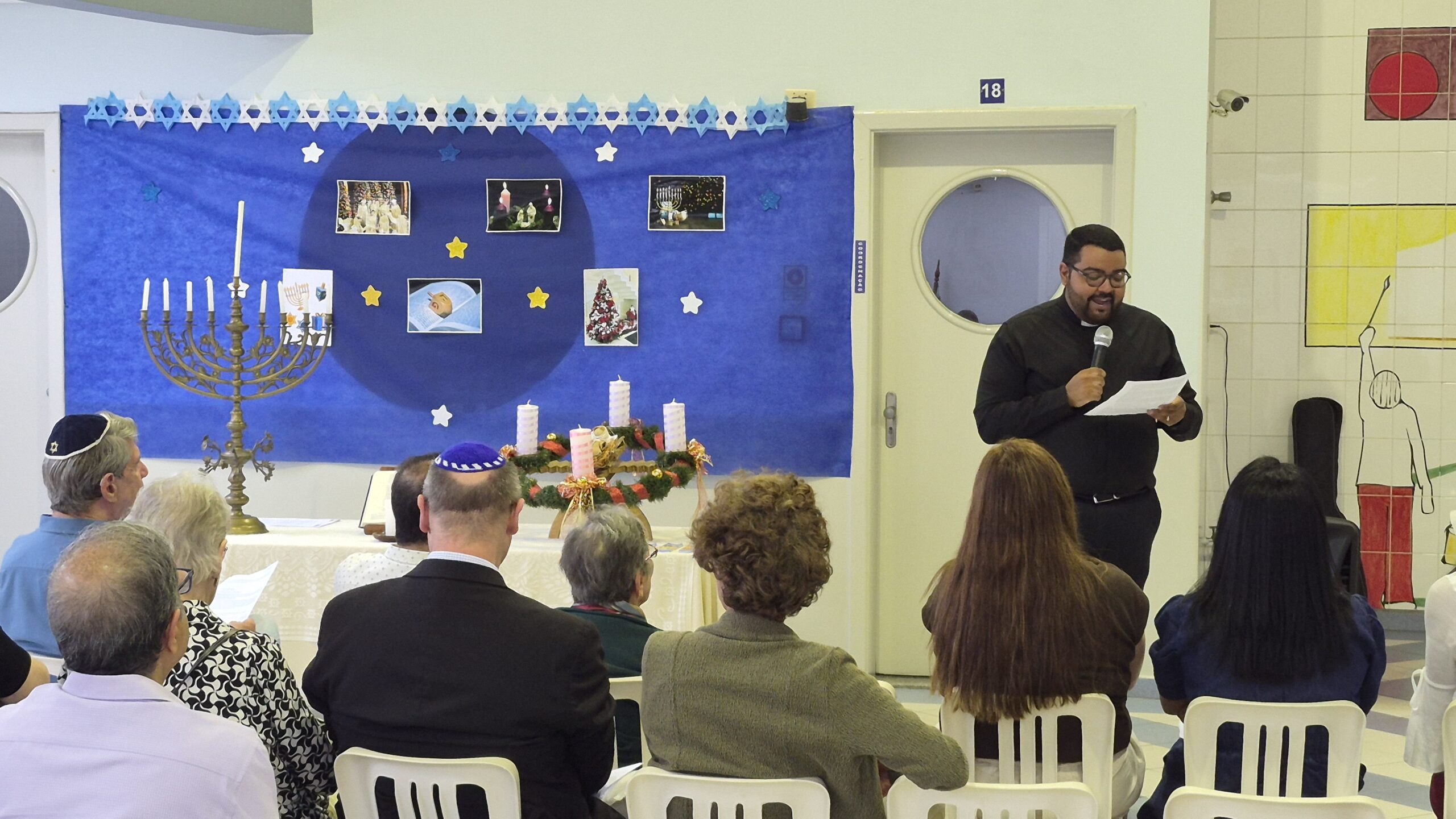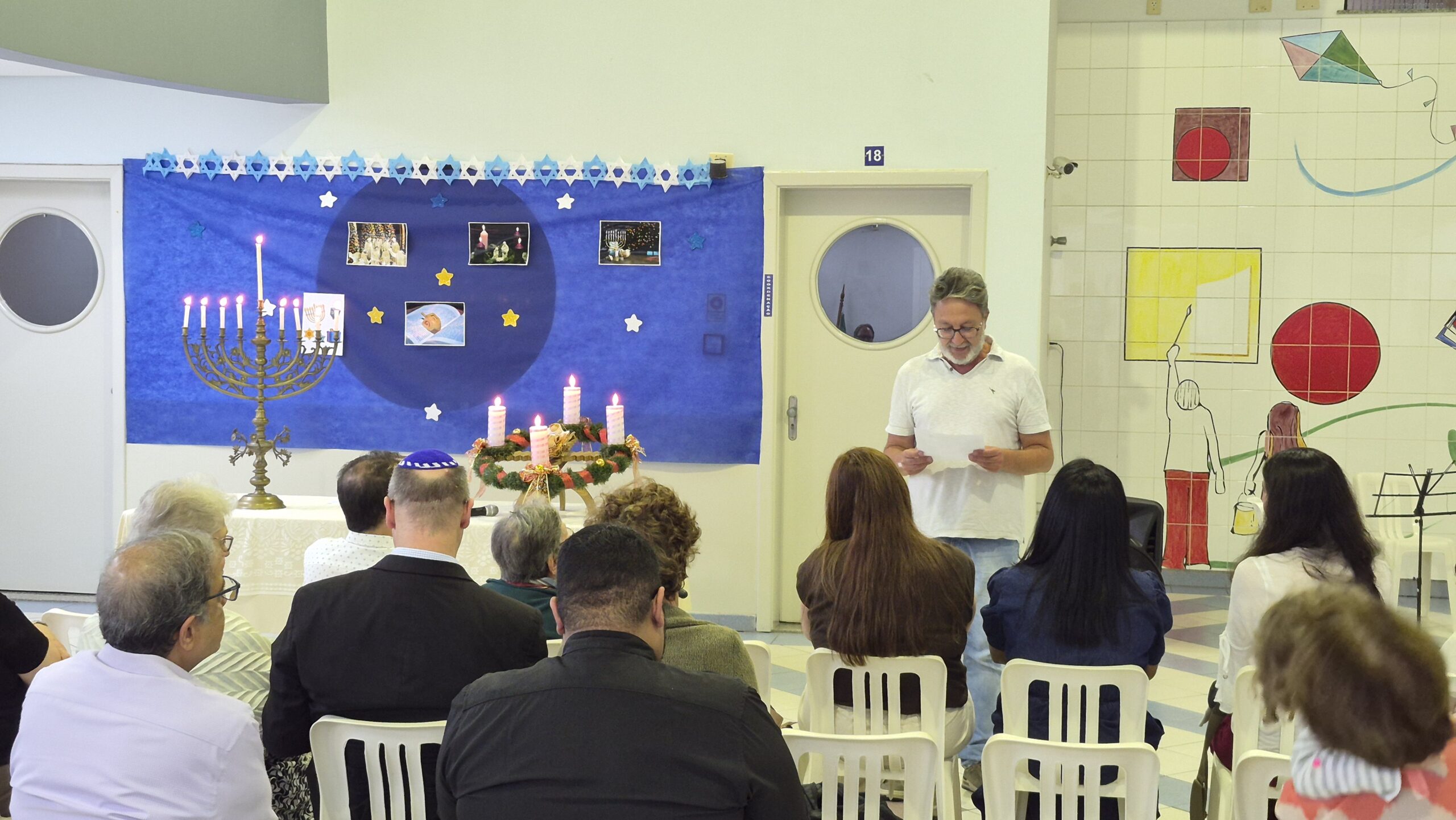 Tivemos momentos de espiritualidade, reflexão e partilha, com a presença do Rabino Uri Lam, o Padre Gleyson Quirino de Oliveira e atrações musicais com o Quinteto Sion da Corporação Musical Irmã Dina de Sion apresentando musicas natalinas e Margot Lohn e Arthur Salim apresentando cantos hebraicos!