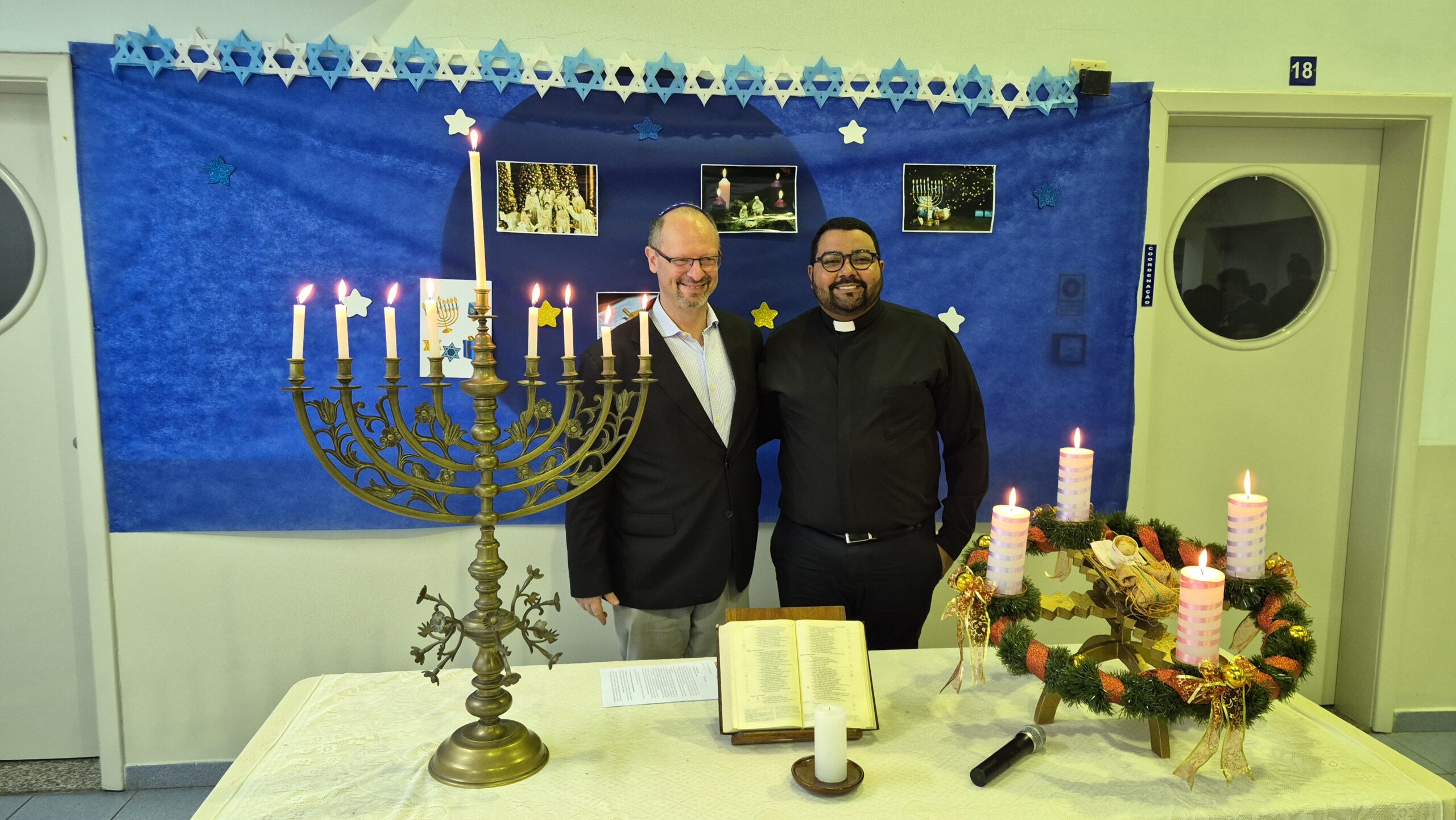 Que o brilho crescente das velas de Chanucá e a chama da espera do Advento aqueçam nossos corações, dissipando as sombras da intolerância e guiando-nos por um caminho de Shalom e Graça.
